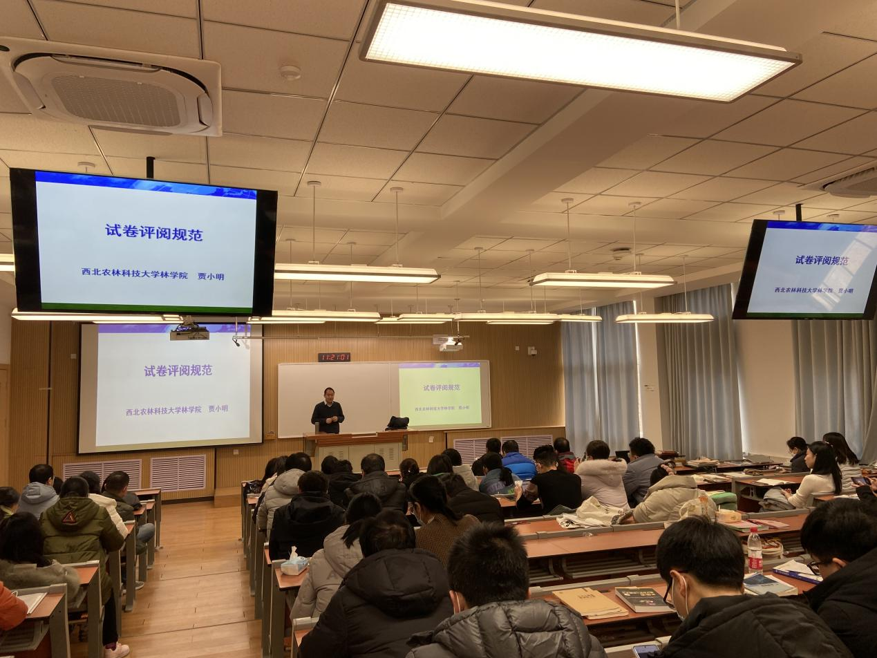 贾小明就黄播平台 期末考试的总体安排、主监考职责及监考规则、主监考注意事项、学生违纪作弊防范与处理等方面进行了详细解读,并对新一轮本科教育教学审核评估自评阶段发现的阅卷不规范问题做了试卷评阅规范培训,结合具体阅卷案例,就批阅标识、得扣分依据及标注、误阅更改、试卷分析等做了统一要求。