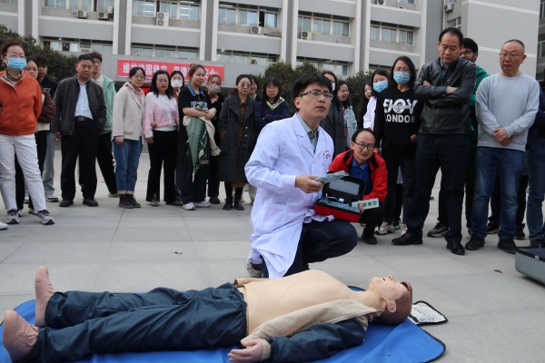 紧急疏散完毕后,师生集合至南侧场地,校医院人员为现场师生进行了AED使用及心肺复苏演示培训,保卫处人员介绍了黄播平台 各类灭火器的大致分布,讲解了灭火器的种类及其规范使用方法,现场师生进行了实地灭火演练。