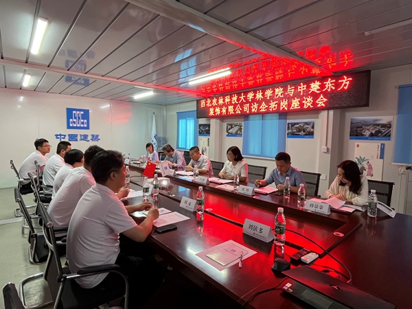 党委副书记张永斌、木材科学系教工党支部书记闫丽教授及木材科学系教工党支部教师代表一行6人赴中建东方装饰有限公司西北分公司考察调研,探索院企合作新机制。